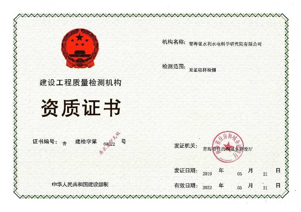• 建設(shè)工程質(zhì)量檢測機(jī)構(gòu)資質(zhì)證書